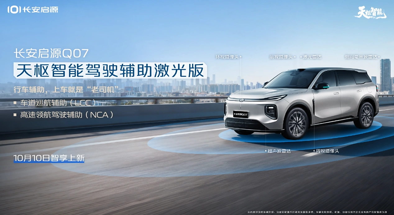 自面市以来,长安启源 Q07 凭借超大空间、超长续航和全新智能体验,迅速成为市场爆款,连续多月登顶 20 万内新能源中型 SUV 销量冠军,并在刚过去的 9 月取得了 10192 台的优异成绩,累计收获超过 6.8 万家庭的信赖。在此背景下,长安启源并未止步,而是推出了此次天枢智能驾驶辅助激光版的焕新升级,旨在通过更强大的智能驾驶辅助能力,进一步巩固其市场领先地位。