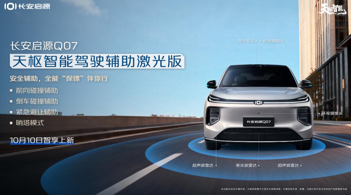 此前长安汽车(000625)就曾透露旗下明星车型长安启源 Q07 将推出激光雷达版。而就在 10 月 10 日,长安启源 Q07 天枢智能激光版车型正式上新。